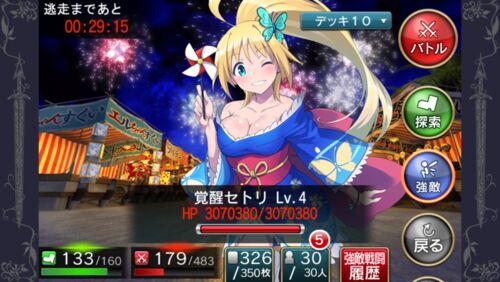 マーリン、大納言に続き闇千代。とMRばら撒きイベントが 続いていますが闇千代はノーマルLV130位と覚醒Lv13まで討伐して ノーマル10体。 結局ホロは出ず終了。 まぁ好きな絵柄なんで良しとします。 で、今週は花火イベントですがマーリンからの疲労が、、…